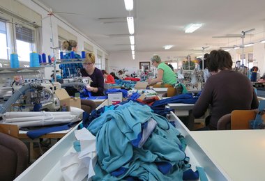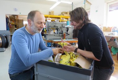 Doch zurück zur Fertigung und unserer Reise. Im Werk treffen wir auf Peter Reinschmidt, das zweite Bindeglied der jungen Skitourenmarke. Stolz führen uns Andi und Peter gemeinsam durch ihre Produktionsstätte. Knapp 70 Frauen sorgen, angeführt vom Produktionsleiter Igor, in zwei Schichten dafür, dass die Qualität stimmt. Die Produktion beginnt am CAD Zeichner, geht zum Zuschnitt und Druck. Dann wird genäht und verschweißt. Taschen, Logos und der Sturmatmer bei der Jamspitz Jacke werden gelasert. Am Ende jeder Produktionskette stehen noch zwei Frauen, die bei jedem Stück die Nähte, Schnitte und Größe checken. „Es ist uns wichtig, die gesamte Produktion selbst im Blick und in der Hand zu haben. Fair, nachhaltig und transparent. Wir produzieren zu 95 % mit europäischen Materialien und schaffen es, den gesamten Weg von der Idee bis zum Outfit komplett in Europa zu gehen“ erklärt uns Peter stolz. Wir sind beeindruckt, insbesondere, dass sich so eine Produktion in Europa noch rechnet. „Das geht, wenn man seine Auslastung gut planen kann“, was schlussendlich neben der förmlich spürbaren Bergbegeisterung von Andi Schreilechner auch ein Grund für den Launch der eigenen Skitourenmarke war. „Wir kommen ja aus dem UV-Schutz und produzieren für namhafte Marken vor allem Sommerkollektionen (Anm: Diese werden im Winter produziert) und im Sommer konzentrieren wir uns jetzt auf die Fertigung unserer eigenen Marke.“ Das Konzept geht auf und die Kollektion wird im Winter 2016/2017 stark ausgebaut.