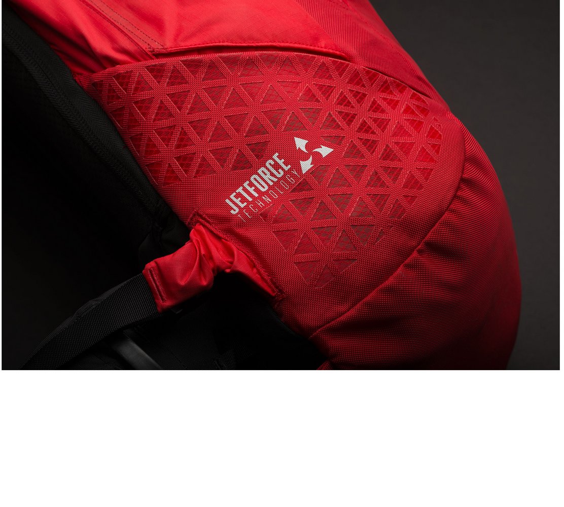 JetForce vereint das Know-How von Black Diamond aus industrieller Ingenieursarbeit und der Erfahrung im Backcountry. JetForce besitzt gegenüber bereits existierenden Airbag-Technologien eine Reihe an Vorteilen – von einem intuitiven Auslösemechanismus bis hin zu einem exklusiv von Black Diamond verwendeten reissfesten und leicht packbaren Airbagmaterial. Für die Entwicklung und das Design der JetForce-Elektronik wandte sich Black Diamond an Pieps, Marktführer im Bereich der digitalen Lawinengeräte.