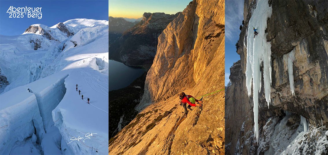 Der Kalender Abenteuer Berg 2025: Stefan Gatt ist wieder einmal eine bunte Mischung von außergewöhnlichen Fotos aus unterschiedlichen Bereichen des Alpinismus gelungen. Der Kalender umfasst Fotos vom Eisklettern, hochalpinen Bergsteigen, (alpines) Sportklettern, Klettersteige und Skitouren. Jedes Bild besticht durch andere Farben, Perspektiven und Stimmungen. Für bergbegeisterte Menschen das ideale Weihnachtsgeschenk!