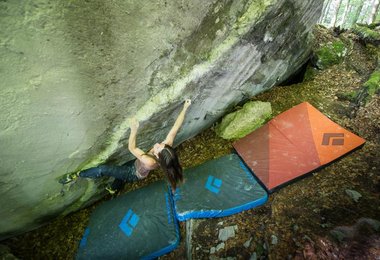 Im April 2018 hatte sich durch Training, Engagement und Motivation eine ziemlich harte Routine entwickelt, die in konzentrierter Arbeit an all den kleinen Griffen und der dafür nötigen, absoluten Körperspannung bestand. „Ich wusste, dass ich im Mai nicht viel Zeit haben würde. Da es schon so warm war, fuhr ich abends nach der Arbeit los und kam erst gegen Mitternacht an. Dann schlief ich, stand gegen 6 Uhr früh auf, machte mir einen Kaffee und etwas Frühstück, fuhr mit dem Rad zum Boulder, versuchte dort ein paar Züge, fuhr mit dem Rad zurück zum Auto und dann direkt zur Arbeit. Es war hart für mich, so früh aufzustehen und dann gleich so hart zu trainieren. Wer mich kennt weiß, dass ich keine Morgenperson bin. Aber all die Anstrengungen waren es wert. Ich dachte mir, dass auch wenn es am Ende nicht mit einer Durchsteigung klappen würde, ich zumindest eine gute Zeit draußen verbracht hätte. Aber dann ist mir am 14. Mai der Durchstieg gelungen.”
