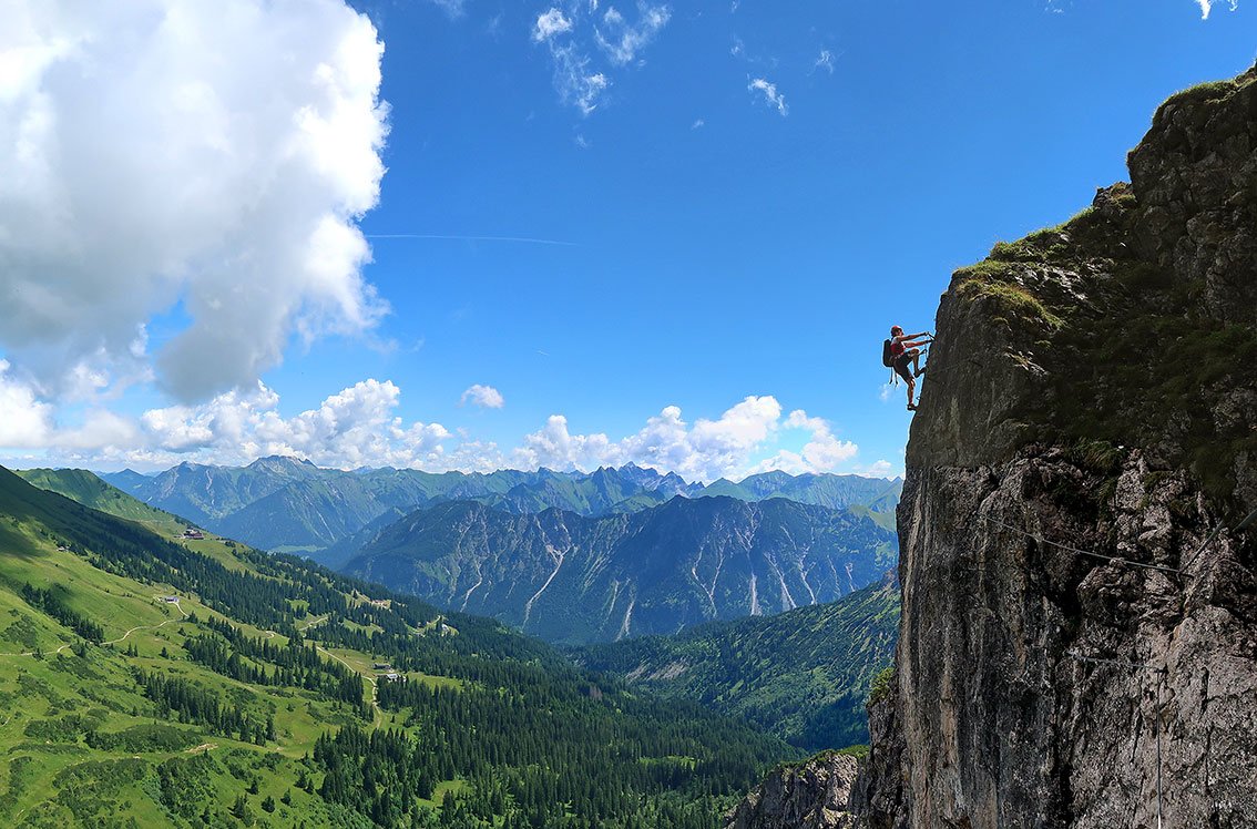 Steile Kante am 2-Länder Klettersteig an der Kanzelwand bei Obersdorf