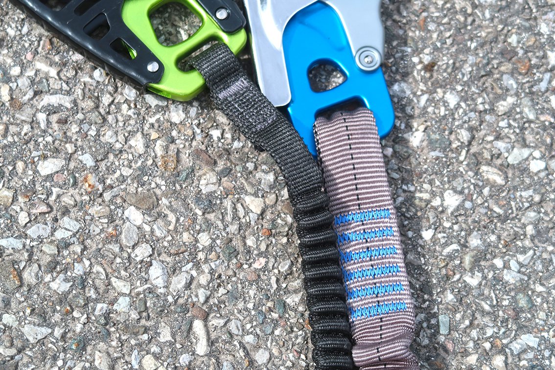 Bei manchen Sets sind die elastischen Arme deutlich zu kurz geraten (LACD) und lassen sich nur mit Kraftaufwand in die Länge ziehen. Bei Seilunterbrechungen ist das ein Thema, mit sehr kurzen elastischen Armen kommt man evtl. nicht zum nachfolgenden Stahlseil. Auch in der Webeart des Bandmaterials gibt es Unterschiede – so haben z.B. Edelrid, Petzl Eashook, Edelrid Comfort Tri, Salewa Ergo Tex und CT Hook It Compact sehr dünne Elastarme – bei den anderen Herstellern sind die elastischen Arme etwas dicker und bei LACD sehr dick ausgeführt. Sets mit dünneren elastischen Armen (und kleinen Bandfalldämpfern - die Top 3 der kleinen Bandfalldämpfer sind Edelrid, Petzl und Rock Empire) lassen sich naturgemäß besser handhaben und sind auch einfacher im Rucksack zu verstauen. Von der Spannweite her ist Salewa mit seinem Ergo Tex ganz vorne und das mit Respektabstand!