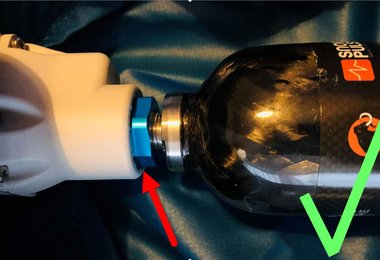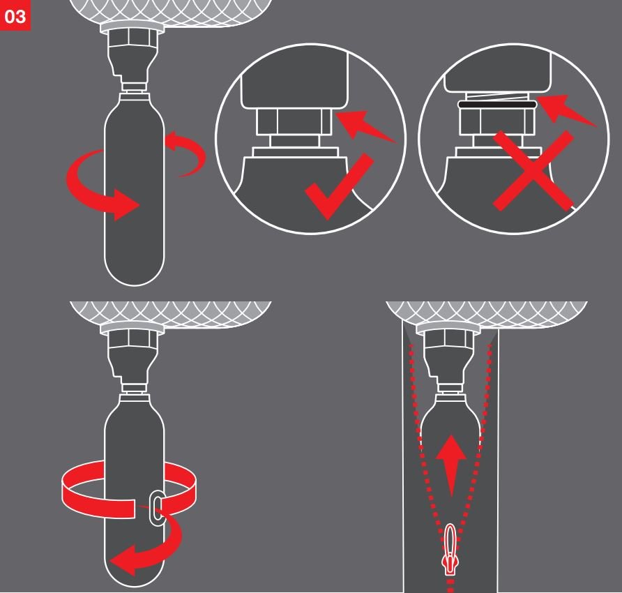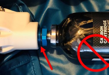 3. Überprüfe, ob die Kartusche bis zum Anschlag in den Mechanismus des Airbag Inflations-Systems geschraubt ist bzw. sich bis zum Anschlag einschrauben lässt