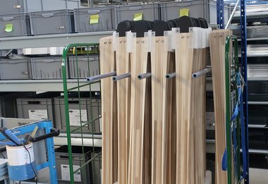 In der Fabrik geht es beim Eingangslager los, Holzkerne, Skikanten, Oberflächen und andere für den Kern benötigte Teile sind je nach Skimodell gut sortiert und schnell greifbar. Vom Lager kommen wir in die Siebdruckabteilung und sehen, wie die verschiedenen Designs für den jeweiligen Ski entstehen. Gleich daneben ist die Schreinerei, in der die Holzkerne je nach Modell bearbeitet werden.
