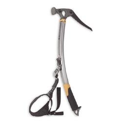 Eisgerät mit starker Krümmung, das für anspruchsvolle Eistouren geeignet ist. Dank des geraden Schaftes läßt es sich auch problemlos in den Schnee stecken - für längere Nordwandrouten durchaus zu empfehlen.