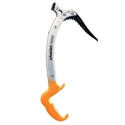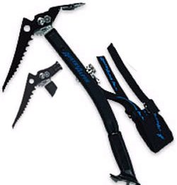 Neues Allroundgerät das alle Spielarten des Eiskletterns ermöglichen soll. Gebogener Schaft, Horn und Fingerhalter erlauben kraftsparendes Mixen und wenn es alpiner wird, kommt statt dem Horn der Pickeldorn zum Einsatz. Natürlich kann man es nicht allen Spezialisten recht machen, doch der Kompromiss scheint auf den ersten Blick gelungen zu sein.