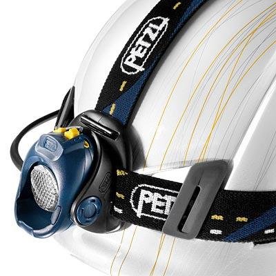 Vier fast unscheinbare Clips halten die Stirnlampe dort wo sie sein soll, natürlich kann man auch das Visier zum Eisklettern "Petzl VIZION" problemlos am Helm befestigen.