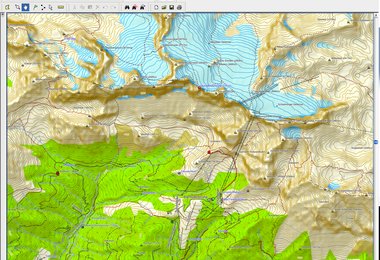 Darstellung von Höhenlinien, Wälder, Gewässer, Gletscher, Berge uvm.