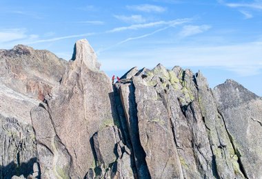 Am Montag, 2. Oktober kletterten Simon und Yannick den gesamten Ostgrat und die obere Hälfte des Südgrates, und zwar von der Zahnscharte bis zur Nadel.