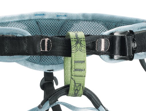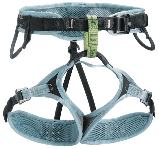 Petzl bringt eine eigene Gurtlinie für Frauen auf den Markt. Vor allem die Form des Hüftgurtes paßt sich dem Beckenbereich der Frau besser an. Die verlängerte Beinschlaufenaufhängung verbessert deutlich den Halt, so trägt sich der Gurt deutlich angenehmer als die reinen Unisex-Modelle von anderen Herstellern.