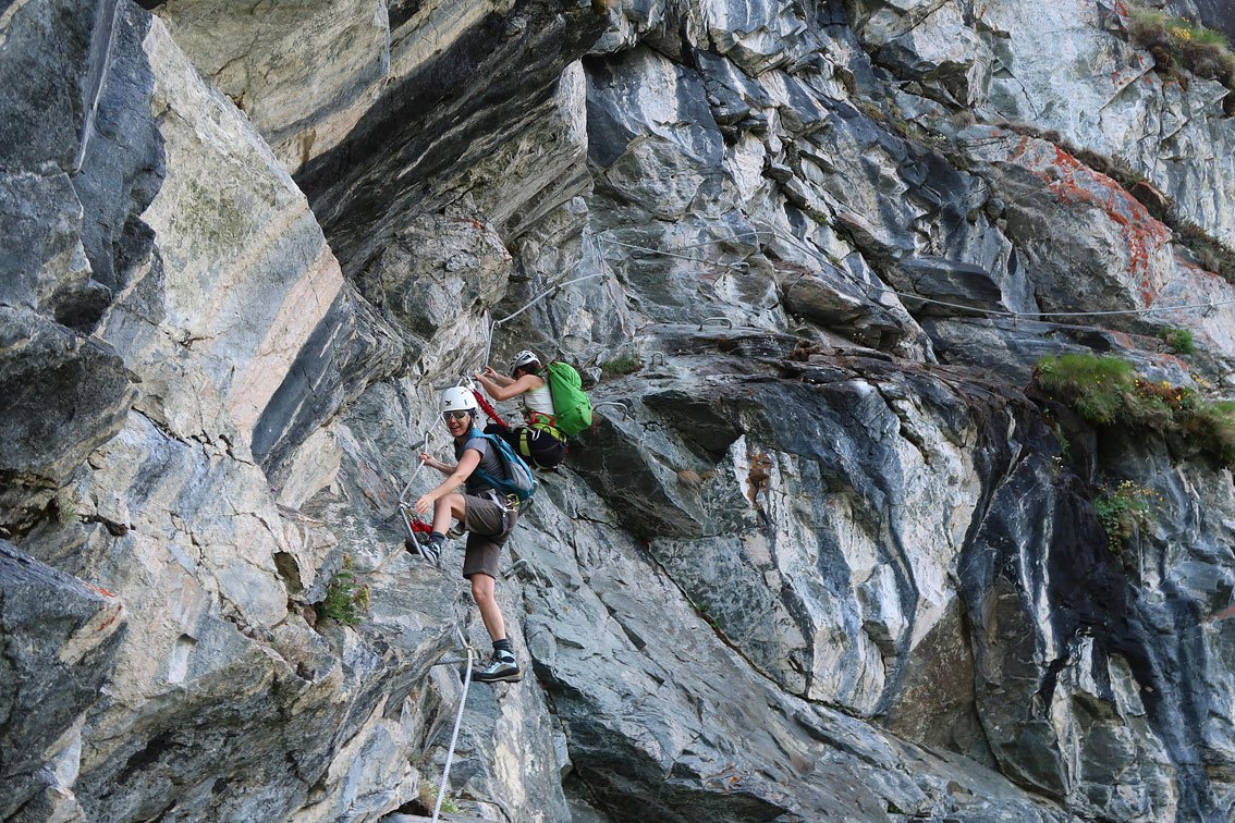 Bereits am Vormittag waren sie mit der Hochjoch- und Sennigratbahn auf rund 2.180 Meter Höhe gefahren und hatten sich anschließend zum Einstieg des Hochjoch-Klettersteigs auf 2.190 Metern begeben. Trotz fehlender Erfahrung im Klettern und Klettersteiggehen wagten sie sich auf die Route, deren durchschnittliche Gehzeit bei etwa vier Stunden liegt.