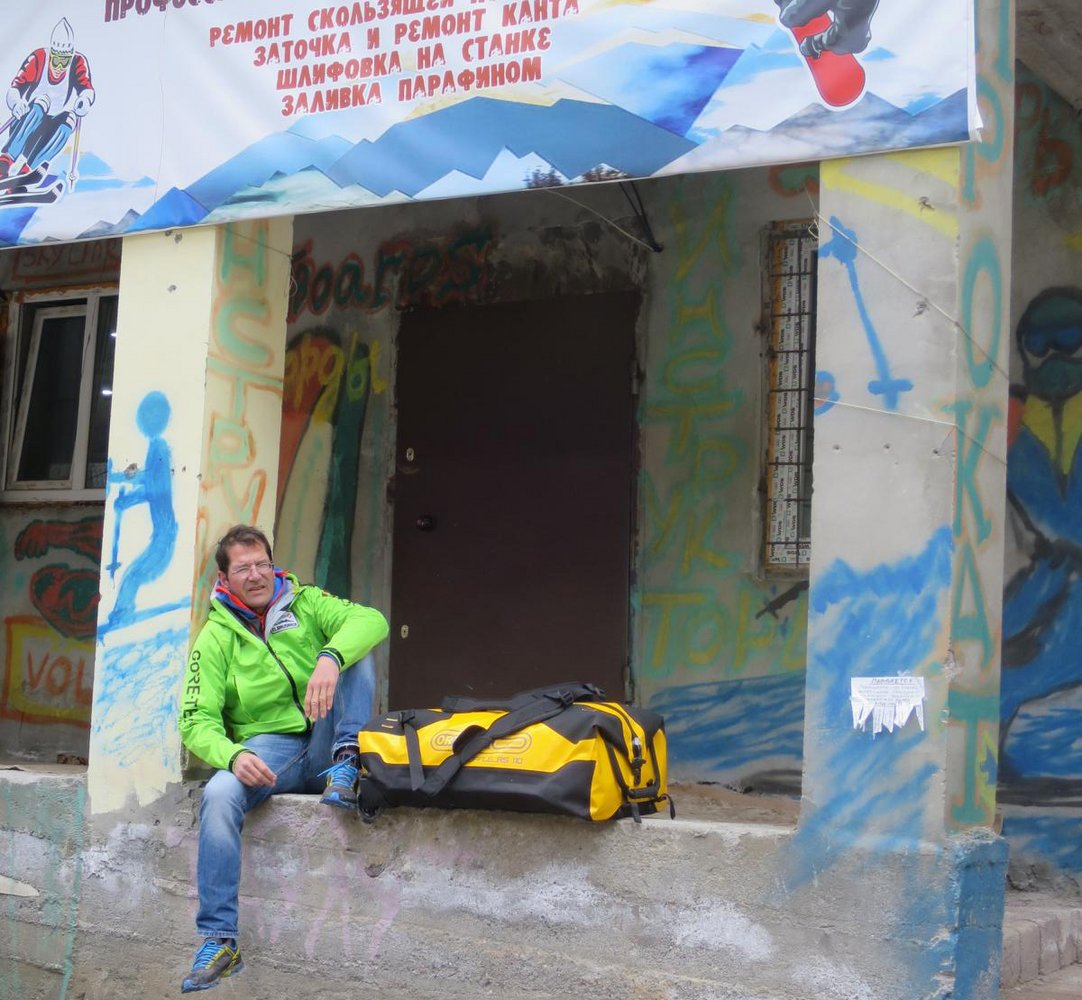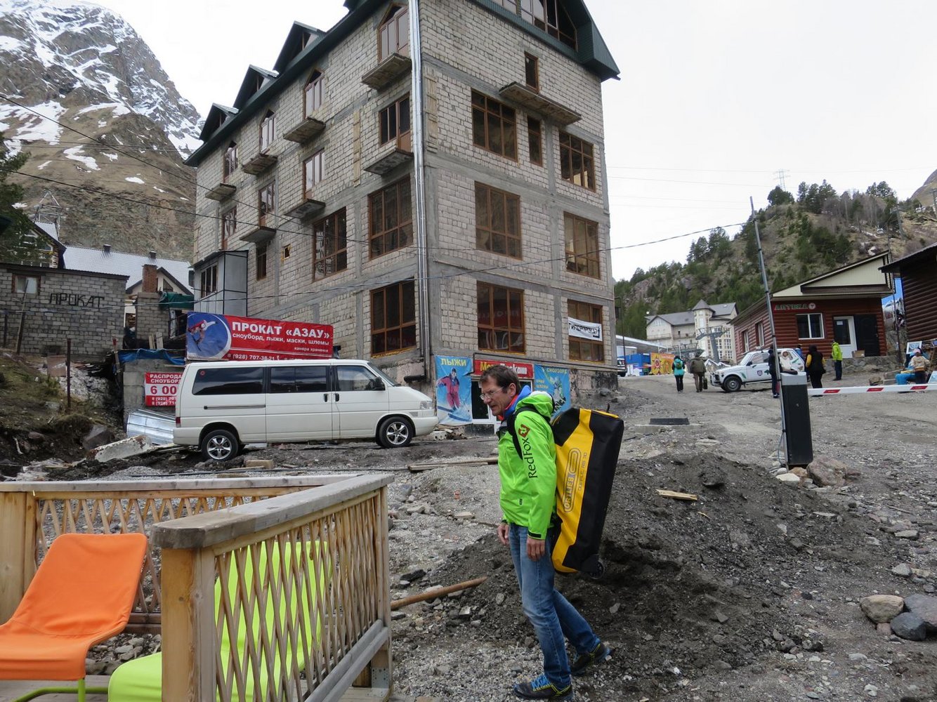 In Mineralnyje Wody angekommen, gabs erstmals eine böse Überraschung - der Skisack war kaputt. Es scheint ein ruppiger Flug für das Gepäck gewesen zu sein. Der Duffle RS hat dank seines robusten Materials nicht die kleinste Schramme abbekommen und ist bereit für den letzten Teil der Reise - die 3-stündige Fahrt im Van nach Azau am Fuße des Elbrus. Die Fahrt steckt der Duffle RS mit links weg und bezieht seinen Platz im Zimmer, wo er für die nächsten sieben Tage Schrank und Wäschekorb in einem bilden wird. Ein wichtiges Detail ist die das graue Wertsachenfach am Taschenboden, in dem Pass und Geld während der Gipfeltage versteckt unter Socken und Unterhosen zurückbleiben.