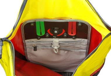 Der Elevation Pro2 hat 42 Liter Volumen, das er allem anschein nach auch locker aufnehmen kann (kommt uns relativ groß vor). Sehr positiv ist uns auch der vertikale Zipp aufgefallen (die Reißverschlüsse sind sogar nach IP 67 wasserdicht), da kommt man schnell an die unteren Sachen im Rucksack. Der Deckel lässt sich komplett abnehmen, so kann man nur mit dem Rollverschluss losgehen. Für Wertsachen und Kleinigkeiten gibt es innen noch eine zusätzliche Zipptasche.