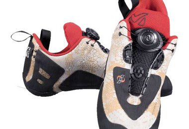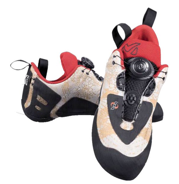 Dies Schnürsystem wurde auch in den Millet Kletterschuh BOA übertragen. Auch bei diesem Leichtgewicht sorgt ein Kabelsystem für die Schnürung. Eingestellt wird alles über ein zentrales Drehrad, das oben auf der Lasche sitzt.
