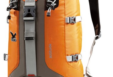 Salewa Rucksack ALTITUDE. Trotz eng anliegendem Rucksack und bei hoher Last sorgen unzählige Luftkanäle in einem Noppenteppich für eine ununterbrochene Luftzirkulation. Das formschöne und funktionelle Modell wird wohl vor allem Kletterer und Klettersteiggeher ansprechen.