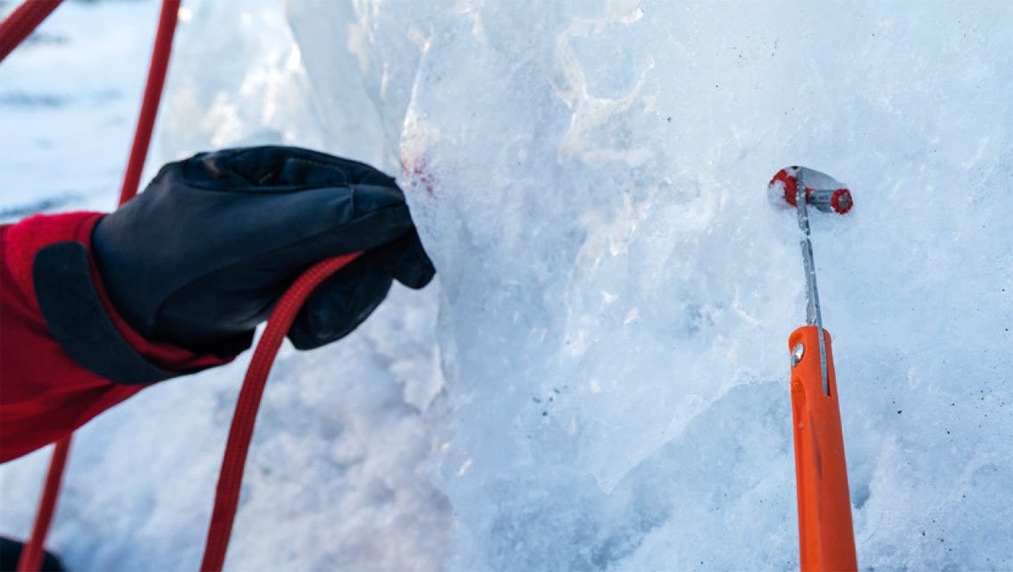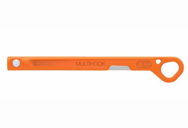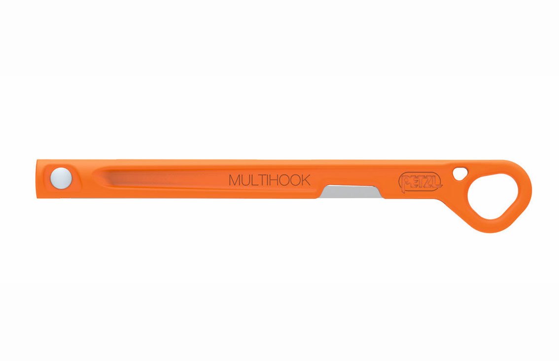 Zum Fädeln von Eissanduhren braucht man die richtige Ausrüstung, damit der Abstieg zügig über die Bühne geht. Petzl hat seine Multihook sauber überarbeitet. Es gibt eine gezahnte Klinge und man kann den Multihook zum „Entleeren“ der Eisschrauben benutzen ohne diese zu beschädigen. Das kompakte Teil wiegt 40 g und ist nur 28 cm lang.