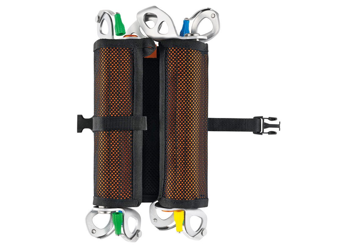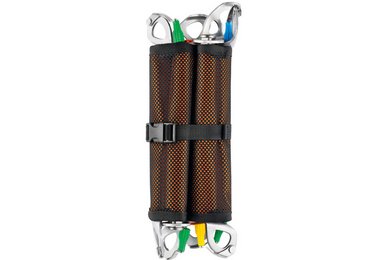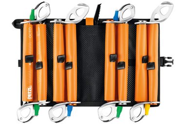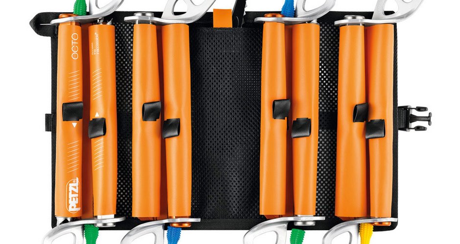 Mit der Octo Eisschraubentasche bringt Petzl eine Tasche zum Transport der Eisschauben auf den Markt. Die Tasche verfügt über 8 Fächer, es können bis zu 12 Eisschrauben transportiert werden. Es gibt ein zusätzliches Fach für Kleinzeug (Feile, Ersatzhaue etc..). Praktisch, man kann die 160 Gramm schwere Tasche auch schräg aufhängen, so trocknen die gut belüfteten Eisschrauben ohne dass man diese aus der Tasche nehmen muss (das Wasser läuft ab).