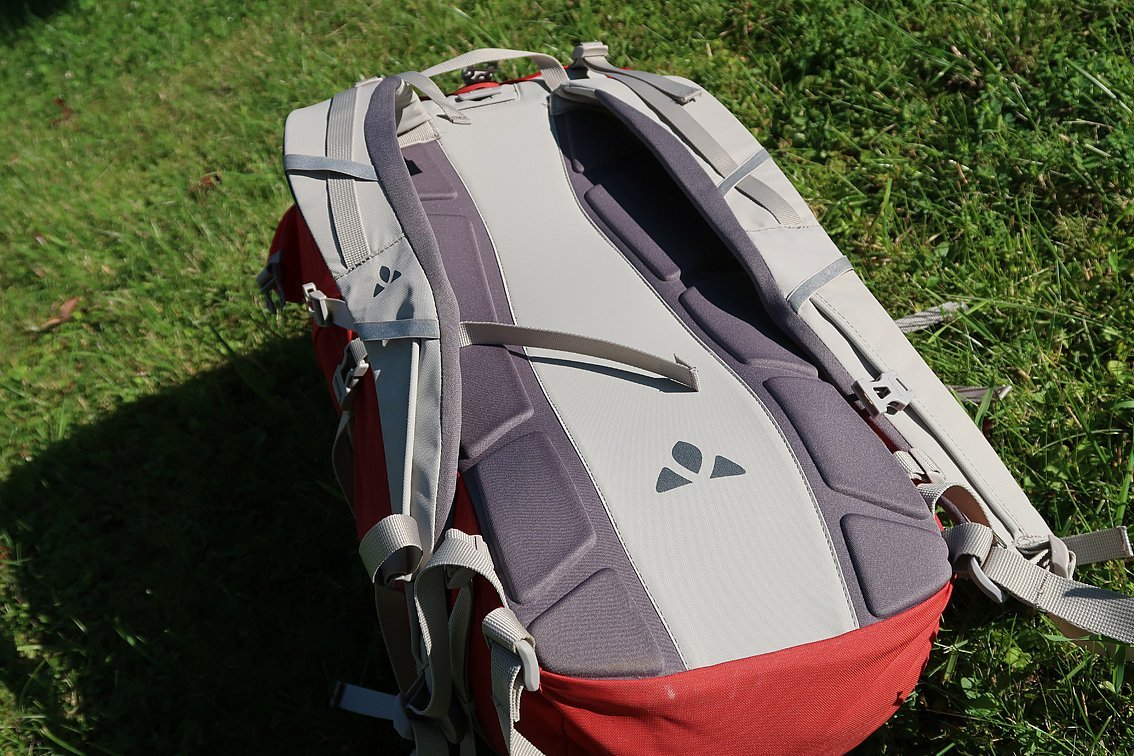 - Tragesystem & Polsterung: Das Tragesystem besteht idealerweise aus Hüft- und Brustgurt, Schulterträger, Lastenkontrollriemen und Rückenteil. Diese Elemente erleichtern es Ihnen, das Gewicht auf dem Rücken zu verteilen, sodass dir der Ballast auf längeren Touren nicht so stark zusetzt. Dies wird durch eine gute Rücken- und Hüftpolsterung unterstützt. Ein Netz- oder Kontaktrücken sorgt für eine gute Belüftung – verschwitzter Rücken adé.