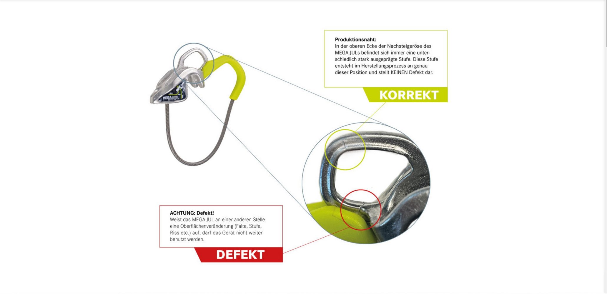 4. Wenn ich die Überprüfung nicht selber durchführen kann oder mir unsicher bin, kann ich mein MEGA JUL zur Überprüfung an EDELRID einsenden?