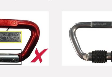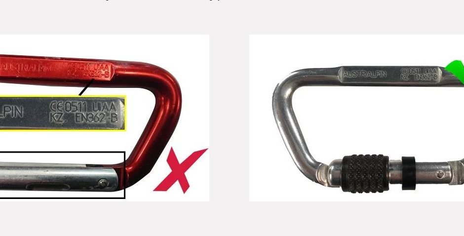 Diese Meldung betrifft nur die UNIVERSAL Schnappkarabiner mit der Artikelnummer KZ01A und KZ01B, nicht jedoch die Schraubkarabiner! Hierbei handelt es sich lediglich um eine falsche Markierung! Es bestehen keinerlei Sicherheitseinschränkungen, die Karabiner halten die geprüften Kräfte!