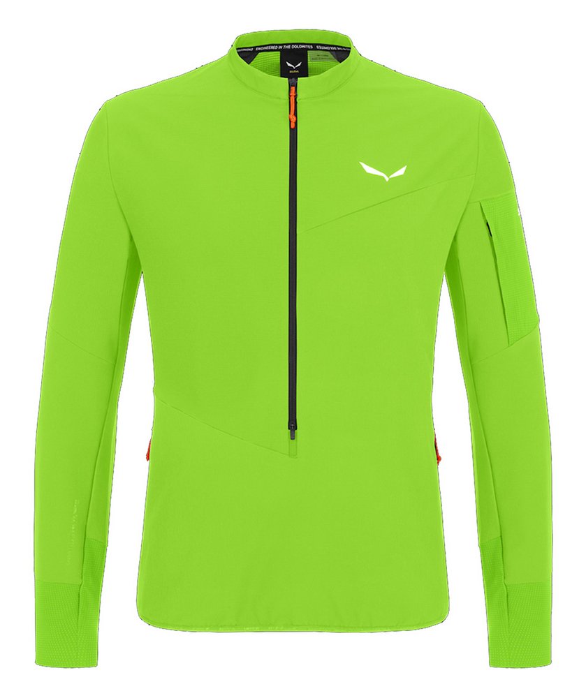 Mit dem neuen Agner Durastretch Anorak präsentiert Salewa für Sommer 2022 eine technische Kletterjacke bei deren Entwicklung Abriebfestigkeit und Bewegungsfreiheit im Fokus stehen. Das körpernah geschnittene Soft-Shell ist für uneingeschränkte Kletterzüge am Fels konzipiert. Ergonomisch geformte Ärmel mit einem kletterspezifischen Zwickel und Vier-Wege-Stretch Material verleihen der Jacke hohen Bewegungsspielraum. Das Durastretch Material des Anoraks ist sehr eng gewebt und damit windresistent. Der Zwei-Wege-Dreiviertel-Frontreißverschluss ermöglicht die Bedienung von beiden Seiten und bringt schnelle Belüftung in anstrengenden Seillängen und an warmen Tagen. In der geräumigen Netzinnentasche lassen sich die Kletterschuhe verstauen, um sie am Stand warm zu halten. Dann garantiert die Sohle besten Grip für ernsthafte Kletterstellen.