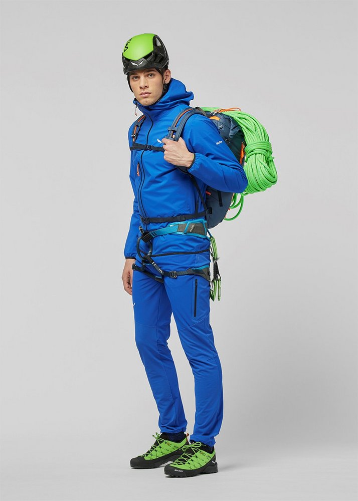 Der Agner Anorak begeistert in den Varianten Grün und Blau mit kräftigen Farben für gute Sichtbarkeit am Fels. Gleichzeitig punktet die technische Kletterjacke mit grünen Werten und erfüllt die Kriterien der „Salewa Committed“ Richtlinie.