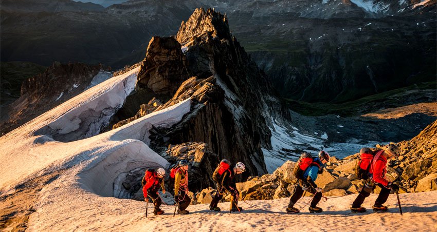 Doch längere Klettertouren sind nicht nur den Profis vorbehalten. Alpine Mehrseillängentouren und Hochtouren erfreuen sich zunehmender Beliebtheit. Nach dem Boom in Kletterhallen und Sportklettergebieten sowie auf Klettersteigen ist das Alpinklettern die logische Konsequenz für Bergsportler, die die Kraft und Schönheit der Berge ambitioniert und in vollen Zügen erleben wollen. Dafür braucht es zwei Dinge: einen erfahrenen Alpin-Experten, der einen in die Alpin- und Hochtouren-Welt einführt, und verlässliche Funktionsausrüstung. Der Schweizer Bergsportspezialist MAMMUT bietet beides: Mit der MAMMUT Alpine School können Interessierte jedes Bergabenteuer angehen – und mit den Hochtouren-Produkten der neuen Sommerkollektion sind sie dafür bestens gerüstet.