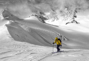 Schnee hat eine außergewöhnliche Kraft: Es braucht nur wenig davon, um Berge und nicht nur diese zu verwandeln. Er macht alles weich und gleichmäßig, erzeugt einen stillen Zauber, nährt Poesie. Und mit dem weißen Mantel wächst auch die Unzugänglichkeit, anspruchslose Pisten, auf denen man im Sommer mit Sneakern auskommt, werden zu Abenteuerplätzen, unmöglich zu bezwingen, wenn man keine Skier an den Füßen hat ansonsten heißt es Knie- oder noch tiefer einzusinken. Skibergsteigen bietet also die Möglichkeit, in diese Welt einzutauchen, den ganzen Zauber der Berge im Winter zu entdecken.