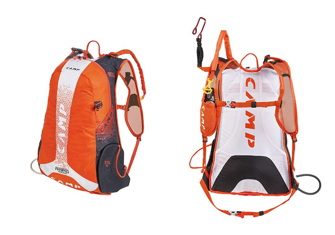 Rapid Racing ist der Bezugspunkt für Skitourenwettkämpfe. Den Unterschied machten die Athleten, die die Details vorschlugen, um ein Höchstmaß an Leistungen im Wettkampf und Training zuzusichern. Rapid Racing wird aus ultraleichtem Gewebe hergestellt und weist einen Haupt-Skihalter mit zwei Befestigungssystemen auf: X-Press Tubular Rewind Holder für klassische Wettbewerbe und X-Press Hook Rewind Holder ideal für die Kategorie Sprint. Mit beiden Systemen ist das Einhängen und Abnehmen der Skier auch bei geschultertem Rucksack möglich. Hervorzuheben ist im Inneren die Zubehörtasche und der praktische Reißverschluss, durch den man das Hauptfach des Rucksacks mit der unteren Steigeisentasche verbinden kann. Letztere ist mit einer seitlichen Zugriffslasche, die mit nur einer Hand auch ohne Rucksackabnahme leicht zu bedienen ist. Ein größeres Stück Klettband garantiert einen perfekten und sicheren Verschluss des Faches, dadurch wird es noch funktioneller. Der Bauch- und Brustgurt ist mit den leichter zu öffnenden Schnallen EZ OP (Alleinvertrieb C.A.M.P.) ausgerüstet, die sich bei Wettkämpfen überaus nützlich erweisen. Mit den Schnallen EZ OP genügt es zum Öffnen am roten Stift zu ziehen, der auch mit Handschuhen bequem zu betätigen ist, und somit kostbare Sekunden zu sparen.