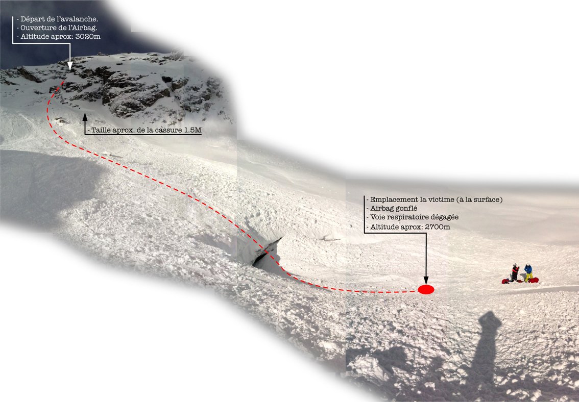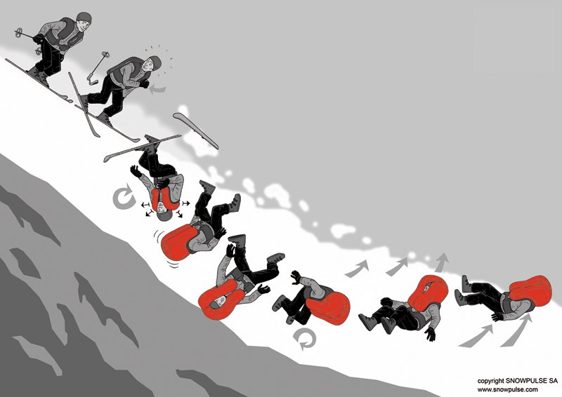 Auch bildet der Airbag bei einer Verschüttung durch eine Nachlawine eine natürliche Atemhöhle und gibt Atemluft ab, welche dem Opfer zur Verfügung steht.