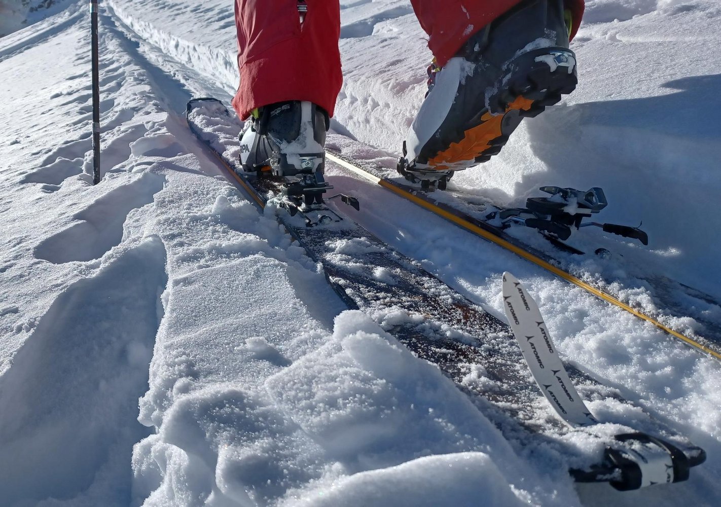 Seit es breitere und zugleich sehr leichte Skier wie den Atomic Backland 100 gibt (er wiegt gerade mal 2.760 g pro Paar (bei Länge 180 cm), gibt es für mich keinen Grund mehr, auch für anspruchsvolle und lange Skitouren einen schmäleren Ski zu nehmen. Ja ich kenne das Argument, dass breite Ski bei langen Querungen in harten Verhältnissen mühselig sind. Die Lösung: vor der Querung Harscheisen anlegen oder wenn es richtig zur Sache geht gleich auf Steigeisen umsteigen – macht man oft eh viel zu spät. Ich jedenfalls fahre seit 12 Jahren nie unter 97 mm Mittelbreite und habe noch keinen Moment erlebt, in dem ich mir einen schmäleren Ski abseits der Piste gewünscht hätte.
