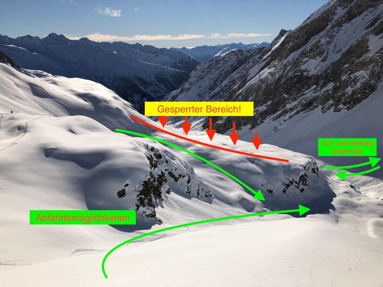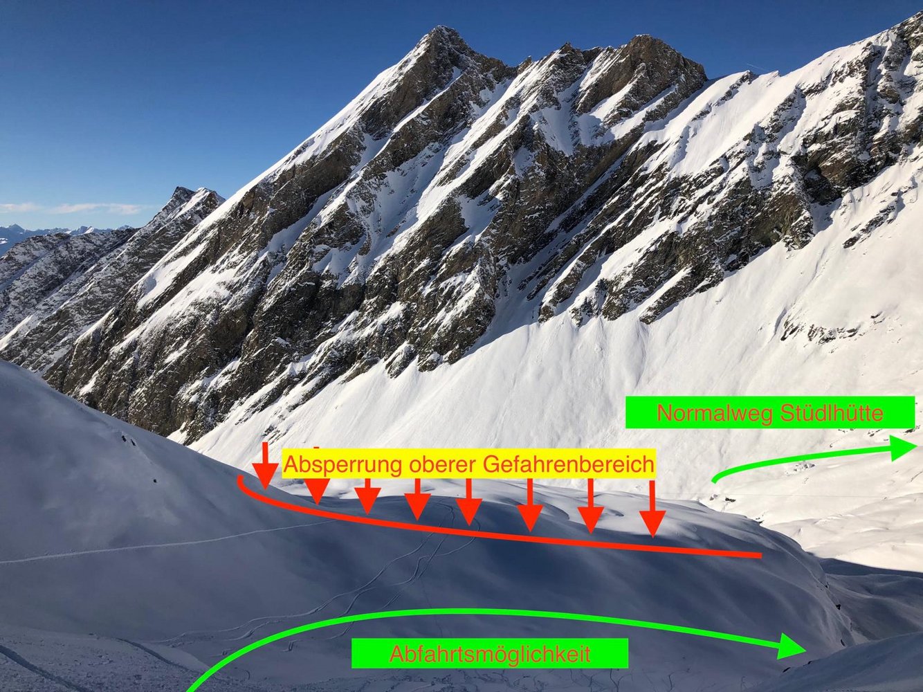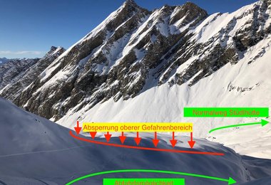Das restliche Ködnitztal, bzw. die üblichen Winterwege Richtung Stüdlhütte und Großglockner sind von dieser Gefahr nicht betroffen! Auch im Abfahrts- Sinn, liegt dieser Bereich etwas außerhalb und kann leicht gemieden werden! Eine lückenlose Überwachung der Gefahrenstelle und der Absperrungen ist auf Grund der Alpinen Lage für uns alleine nicht möglich.