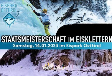 Samstag, 14.01.2023 im Eispark Osttirol - Österreichische Meisterschaft im Eisklettern im Zuge des 6. Eiskletterfestivals Osttirol