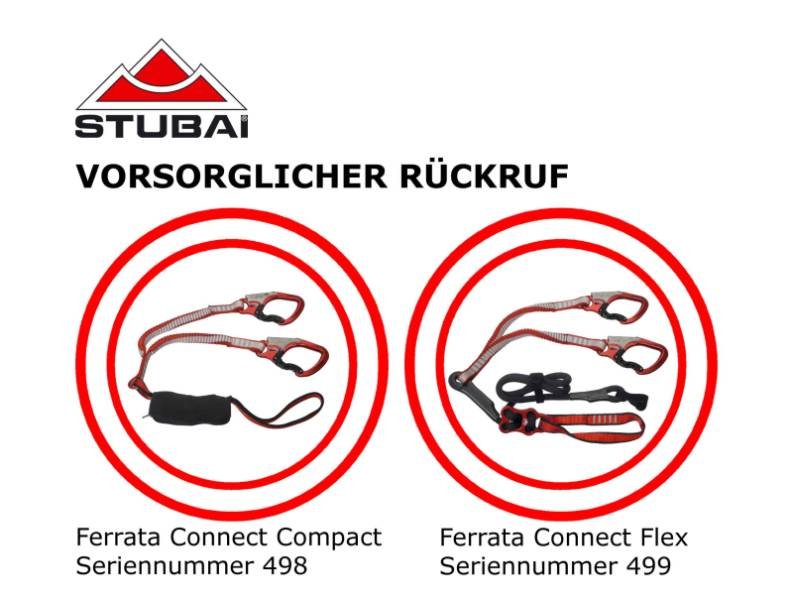 Rückruf Ferrata Connect Compact (Art. 988470) und Stubai Ferrata Connect Flex (Art. 988450)
