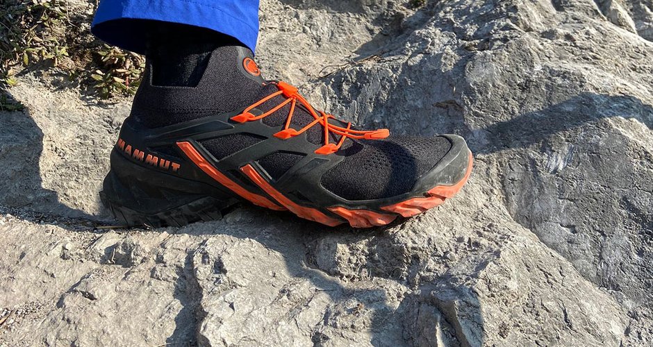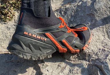 Fazit bergsteigen: Der Mammut Aegility Pro Mid DT ist keine Wühlmaus für schlammiges oder erdiges Terrain. Wenn du einen sehr leichten Schuh für den schnellen Gipfelsieg ohne Schneeberührung suchst, ist das die richtige Wahl für dich.