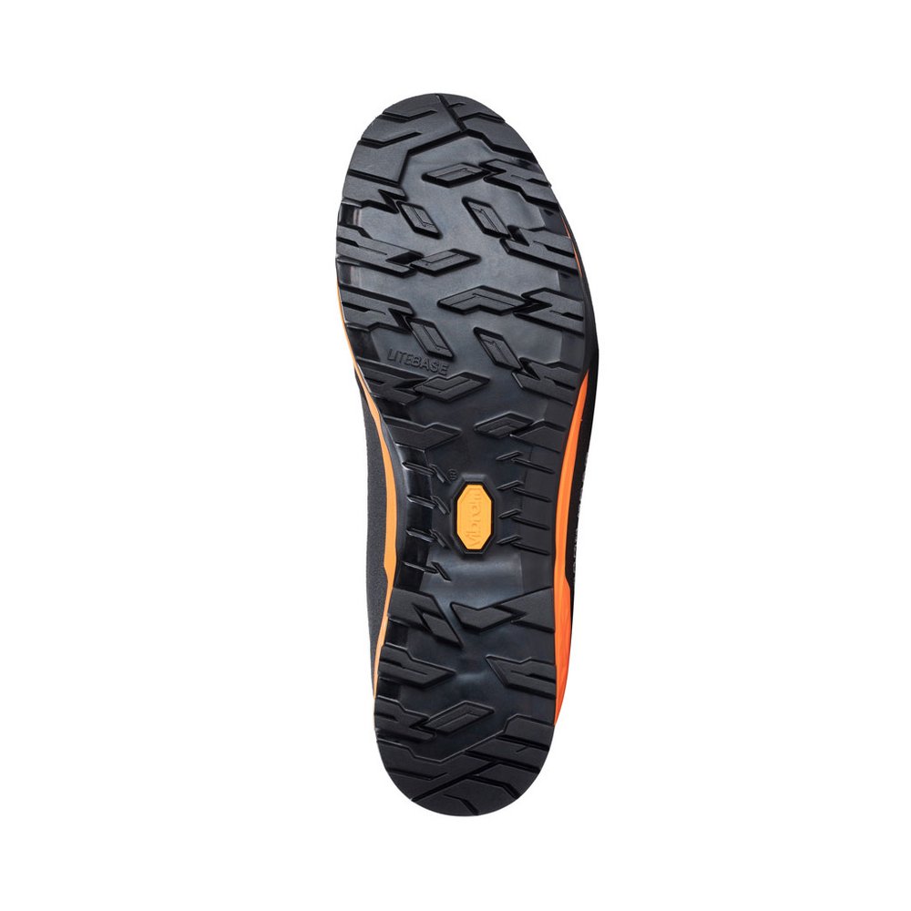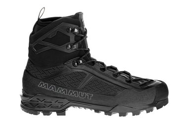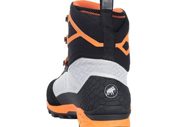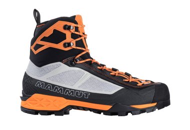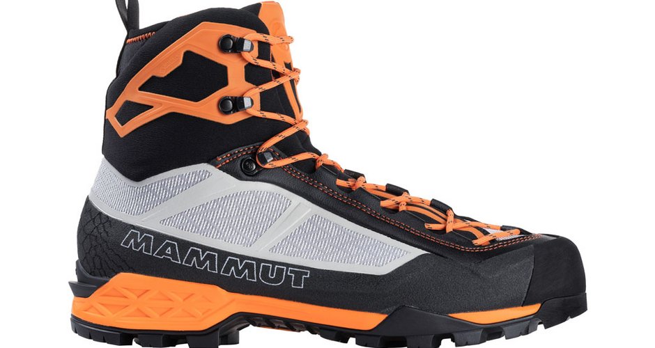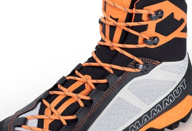 Und wenn einmal eine leichte Gletschertour ansteht oder im Frühsommer am Morgen pickelhart gefrorene Altschneefelder am Weg liegen, lassen sich Steigeisen problemlos und sicher montieren. Aufgrund der fehlenden Bügelaufnahme an der Schuhspitze und dem Flex-Index B2 würden wir den Schuh aber nicht (wie es Mammut tut) als „steigeisenfest“, sondern nur als „bedingt steigeisenfest“ bezeichnen. Dass der Schuh vor allem in der Farbkombination Black-cheddar noch dazu richtig gut aussieht, ist ein angenehmer Nebeneffekt.