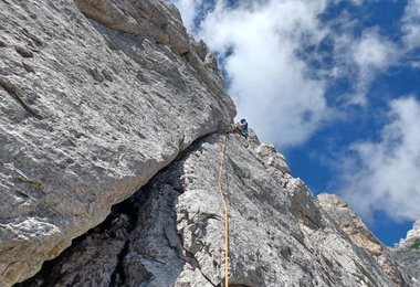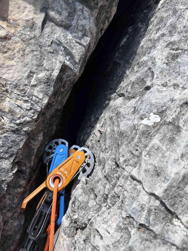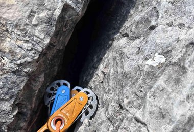 Ich habe den Angel Cam Größe 2 heuer auf einigen Alpinrouten mitgehabt, unter anderem in der Fiameskante und in bei einer eigenen Neutour in den Julischen Alpen. Wie in der Einleitung bereits geschrieben, wollte ich in den Touren einen „Alpinjoker“ mithaben, der im Fall der Fälle breitere Risse abdeckt. Und die Überlegung ist mir auch sehr gut aufgegangen! In der Schlüssellänge der Fiameskante und auch schon zuvor, gibt es einige breitere Risse, die sich mit dem Angel Cam sehr gut absichern lassen, wozu man sonst einen 4er oder 5er Friend extra mitnehmen müsste. Der Angel Cam lässt sich durch seine Bandbreite von Größe 2 bis 5 jedoch viel häufiger einsetzen und ist somit vielseitiger. Und gerade auch bei Neuerschließungen oder bei Touren mit geringem Informationsstand, wo man nicht so recht weiß, was man mitnehmen soll, eignen sich die Rissbreitenwunder sehr.