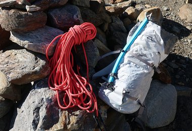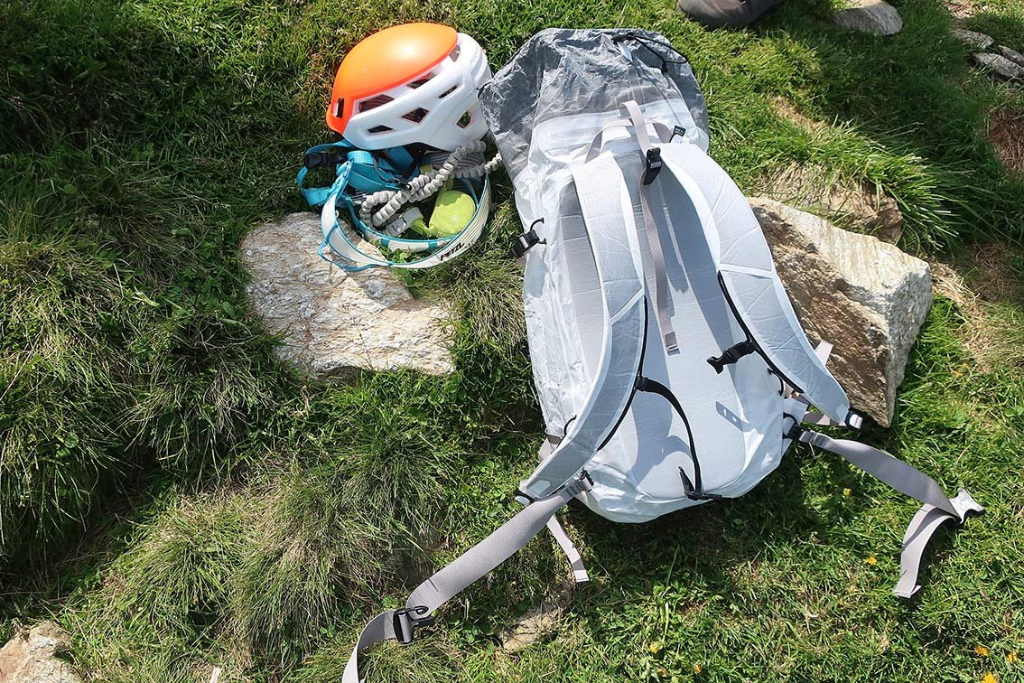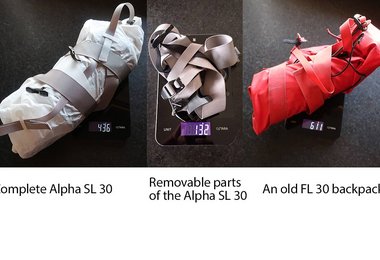 Wir sind wirklich sehr gerne mit dem Alpha SL 30 unterwegs, egal ob Mehrseillängentour, Hochtour, Klettersteig mit MTB-Zufahrt oder bei kurzen Touren in Arco. Man muss sich an ein paar Sachen gewöhnen und gewisse Dinge im Auge haben (Zurrgurte) und das glatte Dyneema-Material rutscht auch im Schnee einen Tick besser (also Achtung, wenn man den Rucksack bei der Hochtour kurz ablegt) - diese Sachen hat man aber schnell im Griff und dann eben nur 436 Gramm auf dem Rücken. Bei längeren Touren wird man quasi eins mit dem Alpha SL 30, da drückt einfach gar nichts und der Rucksack ist sehr gut in das Gesamtpaket (Klettergurt, Seil, Helm) beim Bergsteigen/Klettern integriert.