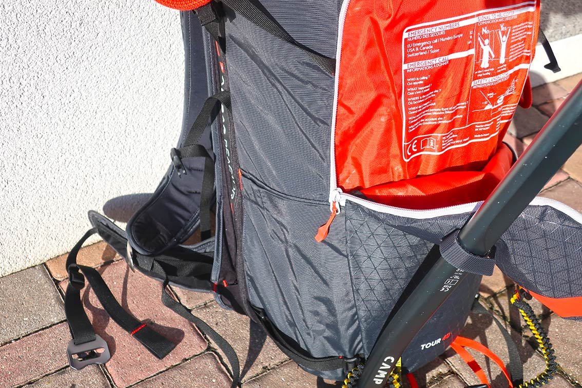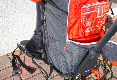 Wir haben es aber umgekehrt gemacht, Schaufel und Sonde (und auch noch Ersatzhandschuhe, Sturmhaube und Harscheisen) finden bei uns im hinteren Fach (bei der Auslöse-Kartusche) Platz. Uns ist der Zugriff auf das vordere Fach lieber, dieses wird von uns deutlich öfters bedient.