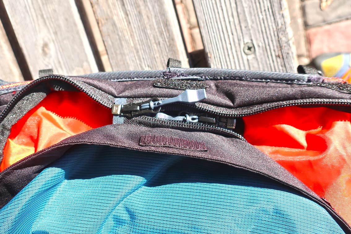 Der Arva Tour 25 Switch besteht aus zwei großen Fächern, die sich jeweils mit einem Reißverschluss bedienen lassen – wobei das hintere Zippfach gleichzeitig auch das Switch-System ist. Vorne – so ist es zumindest vom Hersteller gedacht – kommt die Sicherheitsausrüstung (Schaufel, Sonde) rein, damit diese schnell erreichbar ist.