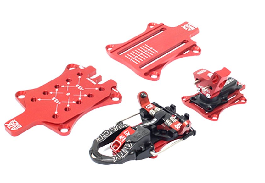Pinbindungen auf sehr breiten Freeride Skiern, mit denen man dann auch aufsteigen will? Da kommt bei Querfahrten - wo man stark Aufkanten muss - extrem viel Belastung auf die Skier. Um diese abzuschwächen bietet ATK eine zusätzliche XXL Freerideplatte, die vorne und hinten unter der Bindung montiert wird. Neben der deutlich besseren Gewichtsverteilung bietet die Platte einen zusätzlichen Verstellweg von 57 mm (vorne 27 und hinten 30)! Die XXL Platte kommt auf 80 Gramm, wobei man davon nur etwas mehr als die Hälfte als "Zusatzlast" rechnen muss (es fällt dafür die orginal Verstellplatte hinten mit 25 mm Verstellweg weg).
