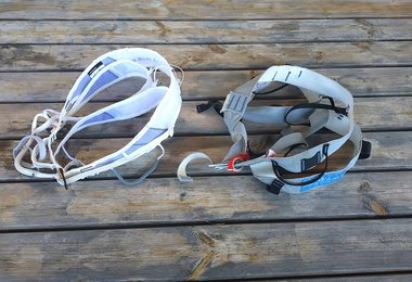 Der neue Choucas Pro ist im Grunde ein vollwertiger Klettergurt, zwei gut ausgeführte Materialschlaufen und zwei dünner Materialschlaufen, eine Einbindeschlaufe und an den Beinen die Möglichkeit zur Schnellöffnung (damit kann man den Gurt auch mit Skiern oder Steigeisen an den Füßen schnell an- und ausziehen) - ein Stecksystem mit zusätzlicher Gummifixierung. Oben eine Zuziehschnalle, die man auch Ein- und Ausfädeln kann, den Choucas Pro kann man sogar komplett im Stehen anziehen, ohne die Füße dabei heben zu müssen (Steigeisen und Skier muss man nicht abschnallen). Da der hintere dünne Gummi mit einer kleinen Schnalle zu lösen ist, ist das trotz eingenähter Einbindeschlaufe möglich!