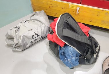 Quergriff am Boden, falls der Rucksack mal auf dem Kopf steht, oder der Partner beim Zustieg zu schnell geht;-)