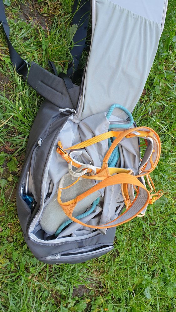 Hauptfach mit herausnehmbaren Seilsack: Das Hauptfach ist über einen Rissverschluss am Rücken gut zugänglich UND hat innen zwei Griffe, um den liegenden Octopus schnell mal auf die Seite zu heben.