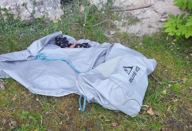 Seilsack mit Klettverschluss verschließbar und drei Seilhalterungen