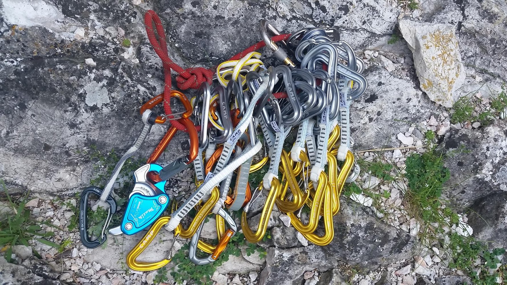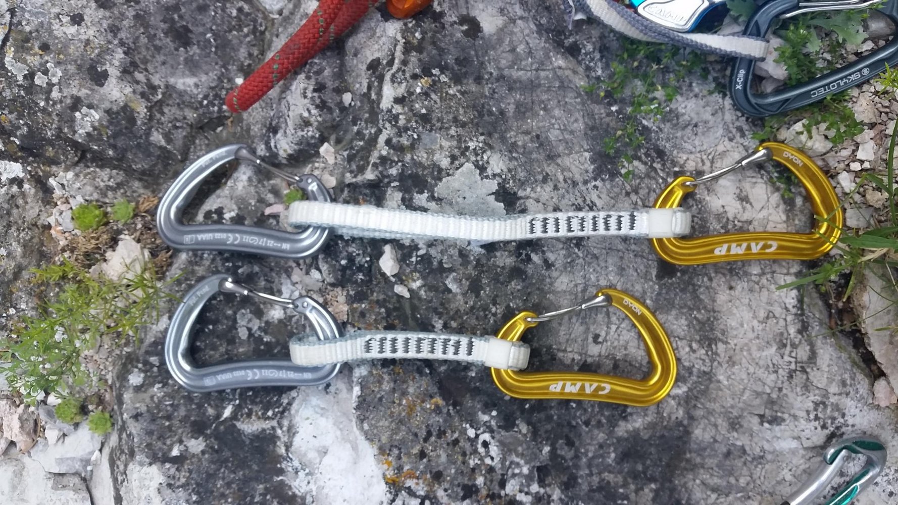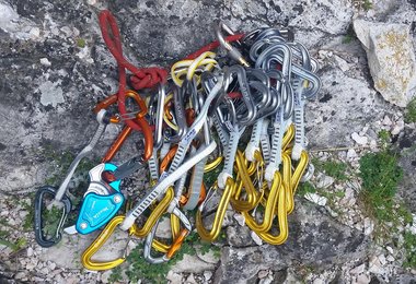 Irgendwann braucht man wieder neue Expressen, bei uns war es nach fast 10 Jahren soweit und natürlich haben wir den Markt nach den besten und leichtesten Exen gescannt. Karabiner mit Drahtschnapper müssen es sein, die gibt’s ja schon seit geraumer Zeit und sie haben auch den Vorteil, dass der Whiplash-Effekt schwächer ausgeprägt ist als beim normalen Schnapper - wenn ein Karabiner mit dem Rücken (der schnapperabgewandten Seite) schwungvoll gegen den Fels schlägt, öffnet sich der Schnapper kurzzeitig auf Grund der Massenträgheit.