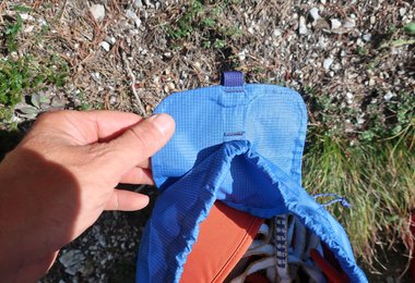 Beim Klettern selbst hat man je nach verbleibender Ausrüstung die Wahl zwischen weiter am Rücken tragen – was wirklich kaum stört –, oder den Rucksack in seine Außentasche stopfen und an den Gurt hängen. Besonders gut gefällt uns das „Quick opening drawcord system“, welches ein einfaches und rasches Öffnen und Schließen des Rucksackes ermöglicht. Das geht mit einem Griff und spart wirklich Zeit. Die neue Dragonfly Generation schützt die zusammengezogene Hauptöffnung noch zusätzlich mit Stoff vor Regen, wenn das Seil obenauf nicht diese Funktion übernimmt.