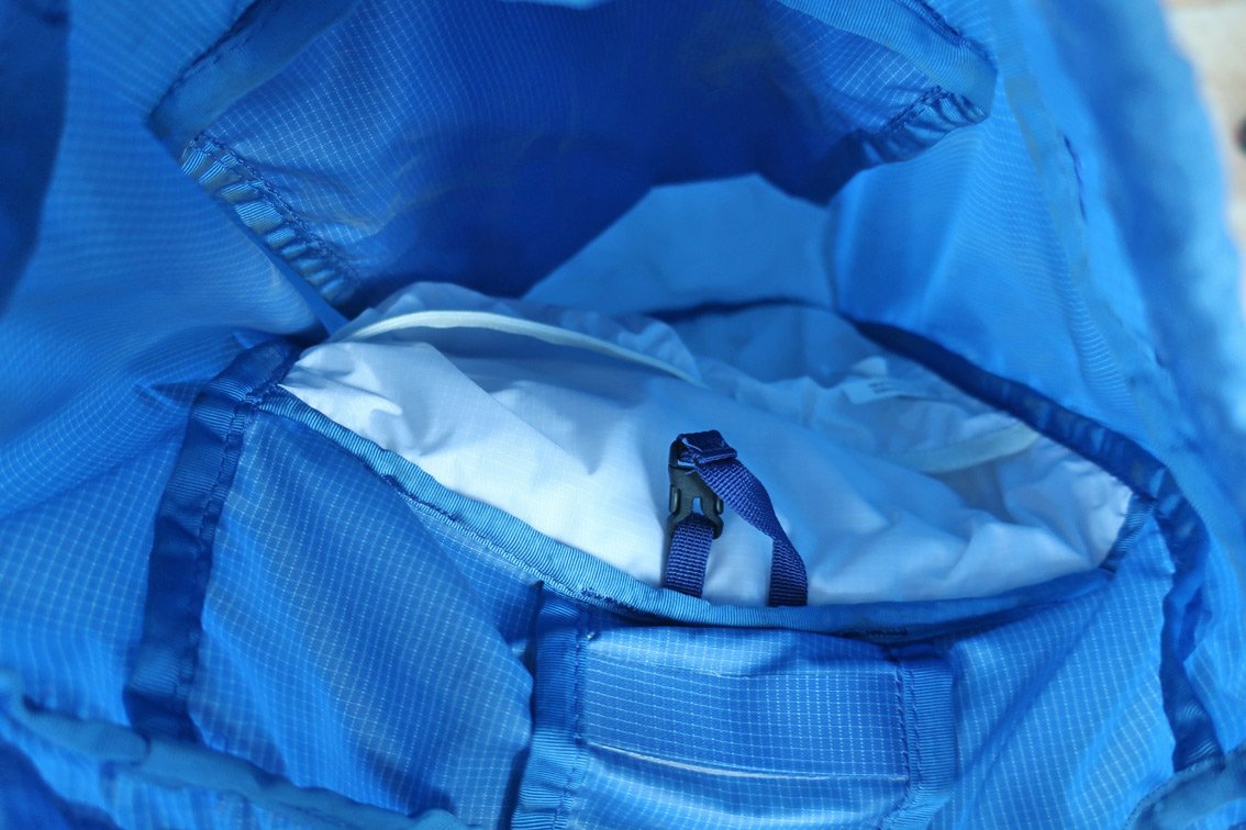 Der Dragonfly hat eine zuzippbare, recht große Außentasche für Schlüssel und Co, dich gleichzeitig auch als Rucksack-Packsack dient und innen noch ein offenes Fach, z.B. für den Trinksack.