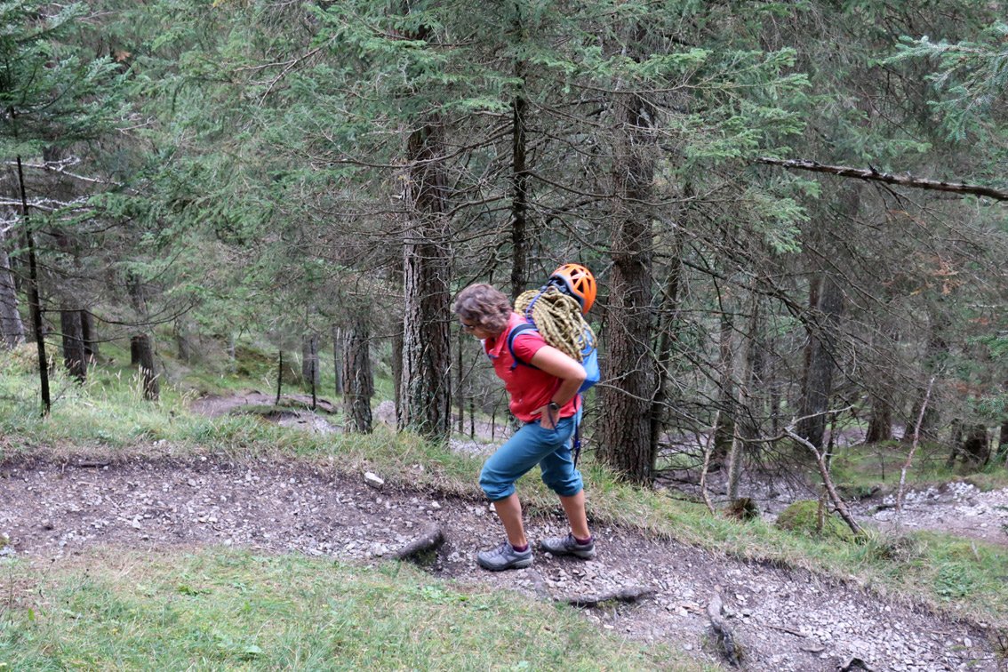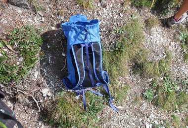 Wenn man den Dragonfly zum Felsklettern verwendet, nimmt man zuerst die Pickelhalterungen ab und füllt den Rucksack mit der Ausrüstung. Da der Dragonfly in der neuesten Generation aber keine Rückenpolsterung mehr hat (seufz - aber deshalb noch leichter), sollte man Friends & Co im vorderen Teil des Rucksacks verstauen. Das Seil kommt dann oben drauf und sitzt dank der eigenen Befestigungsschlinge bombenfest.