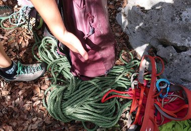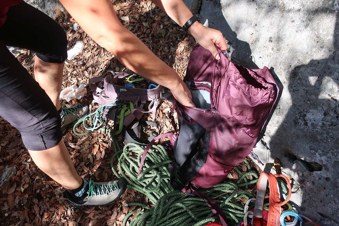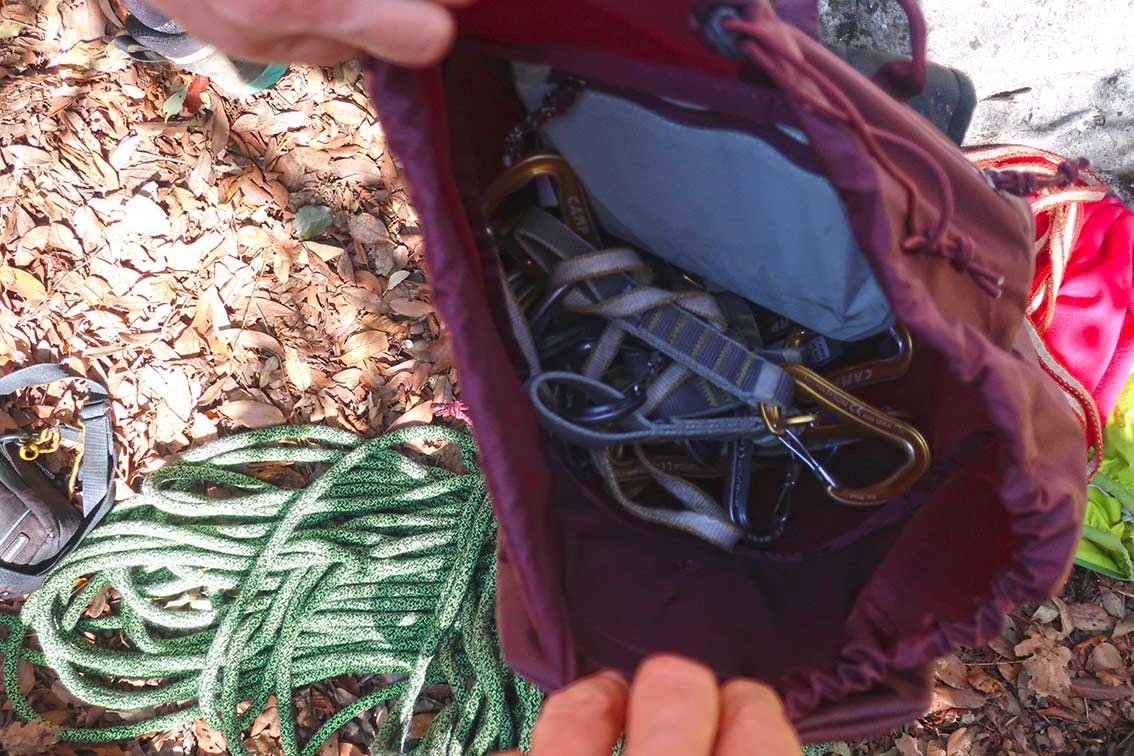 Die obere Abdeckung - also quasi der Deckel - wurde nur geringfügig verändert, das Kordelzugsystem wurde etwas modernisiert, der finale Verschluss ist aber im Grund gleich wie beim Vorgängermodell. Eine gepolsterte Schaumeinlage soll das über den Rucksack gelegte Kletterseil besser stabilisieren und gibt auch optisch etwas mehr her - das "Plastiksack-Feeling" beim Vorgängermodell ist komplett weg.